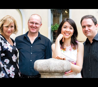 Zwei Weltklasse Pianisten spielen vierhändig an einem Instrument, eine Top-Bassistin und Sängerin, und ein ausdrucksstarken Holzbläser, unterhalten ihr Publikum auf allerhöchstem musikalischem Niveau von Ragtime über Swing, von Boogie Woogie bis Blues, gewürzt mit etwas Mambo und Tango. Die Gruppe besteht aus Nicki Parrott, AUS (Bass, Vocal), Stephanie Trick, USA (Piano), Engelbert Wrobel, D (Klarinette, Saxofon) und Paolo Alderighi, I (Piano).